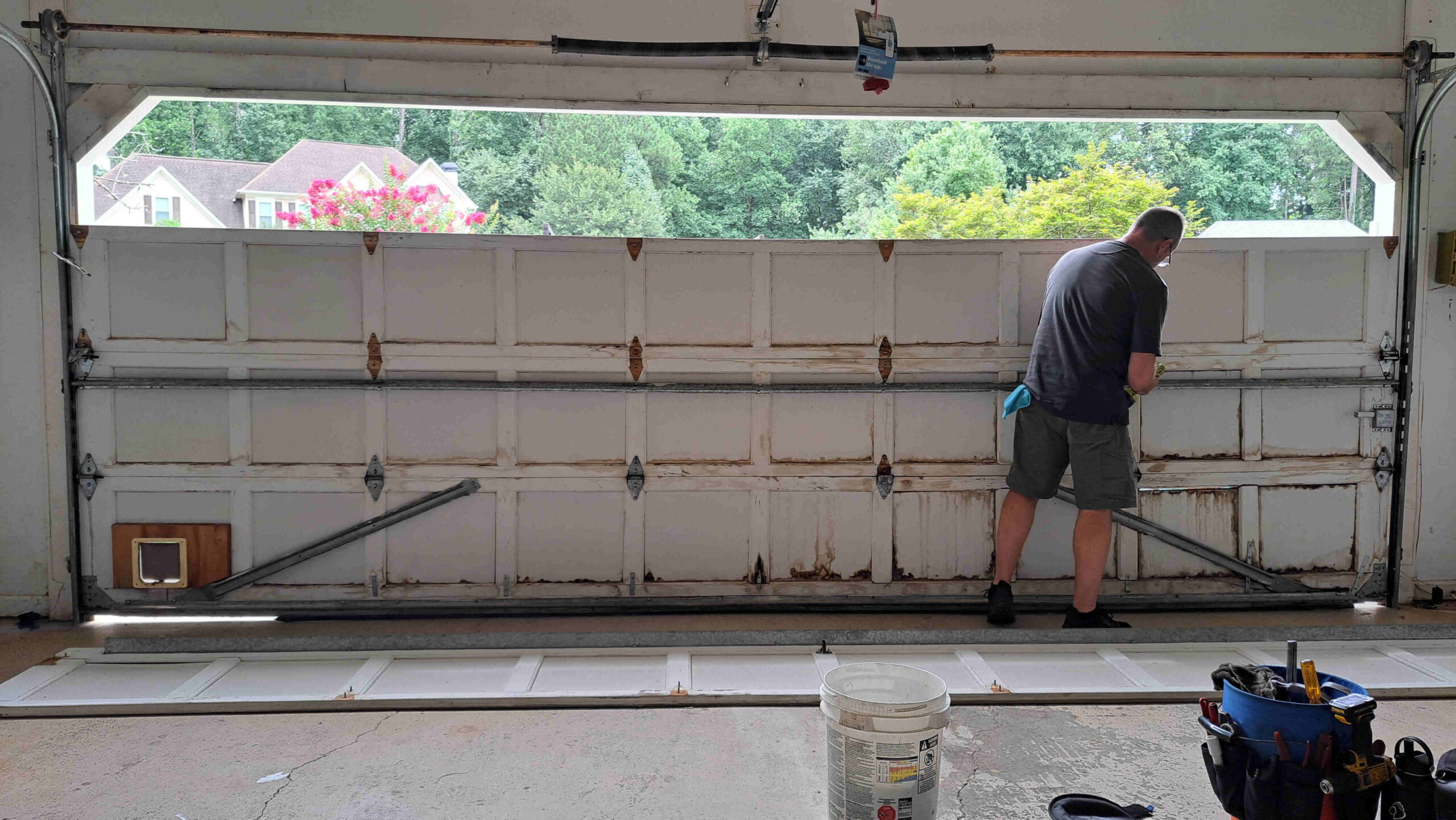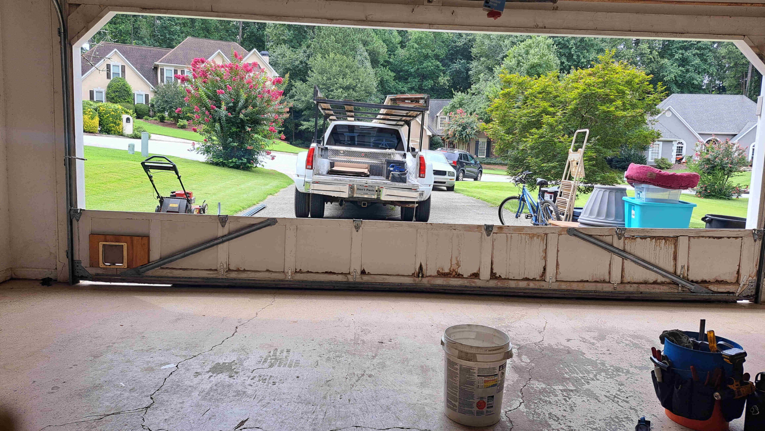 - A garage door with a broken spring can slam closed violently. Use Extreme Caution!